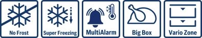Technologia NoFrost zapewnia maksymalny komfort, ponieważ zapominasz o ręcznym rozmrażaniu. Funkcja Supermrożenie pozwala szybko zamrozić nowo włożone produkty, a jednocześnie chroni już przechowywane zapasy przed rozmrożeniem. O elastyczne zagospodarowanie wnętrza dba VarioZone z wyjmowanymi półkami i szufladami, natomiast Big Box zapewnia dodatkowe miejsce na większe produkty. Równomierne rozprowadzanie chłodnego powietrza w całej zamrażarce wspiera System MultiAirflow, a o bezpieczeństwo użytkowania dba alarm z sygnałem dźwiękowym lub świetlnym w przypadku otwartych drzwi lub wzrostu temperatury.