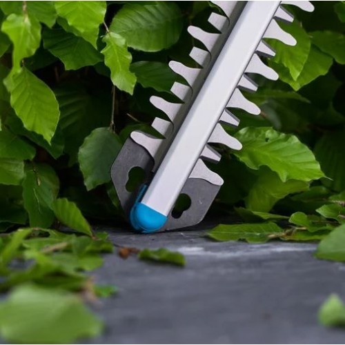 Akumulatorowe nożyce do żywopłotu EasyCut 45/18V marki GARDENA to lekkie i ergonomiczne narzędzie przeznaczone do wygodnej pielęgnacji ogrodu. Dzięki 45-centymetrowym ostrzom przeciwbieżnym, szlifowanym diamentowo i wycinanym laserowo, zapewniają precyzyjne cięcie oraz pewne chwytanie gałęzi bez konieczności powtarzania ruchu.