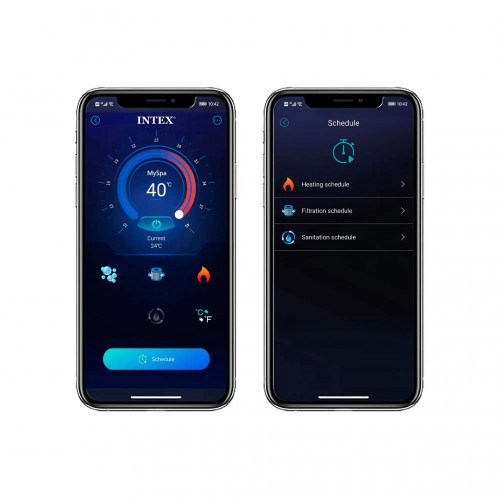 Ta dmuchana wanna spa INTEX to idealny wybór dla osób poszukujących połączenia nowoczesnego designu, wydajności i maksymalnego komfortu. Dzięki 140 dyszom bąbelkowym, temperaturze wody do 40 °C oraz zaawansowanemu systemowi uzdatniania wody możesz cieszyć się doskonałym relaksem w swoim domu. Nowe wkłady filtracyjne S2 zapewniają jeszcze skuteczniejsze oczyszczanie wody, a oświetlenie LED tworzy przyjemną atmosferę do wieczornego wypoczynku. Stabilna konstrukcja z technologią Fiber-Tech oraz łatwe sterowanie przez aplikację sprawiają, że jest to idealne domowe rozwiązanie wellness do codziennej regeneracji.