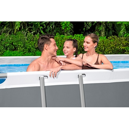Basen naziemny Bestway® Power Steel™ jest łatwy w montażu i bardzo trwały odporny na korozję metalowy stelaż jest wyposażony w nasz system Seal & Lock™, który zapewnia solidne i bezpieczne połączenie elementów stelaża. Niecka Tritech™ jest wykonana z trwałego materiału, który jest wzmocniony w celu zwiększenia wytrzymałości i odporności na przebicia.