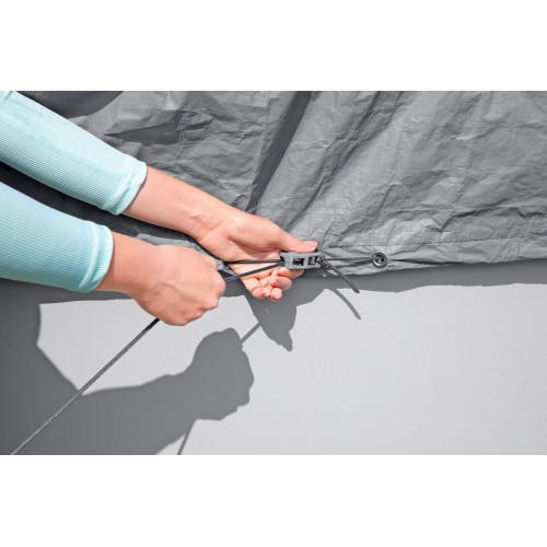 - Mechanizm zacisku odporny na wiatr – utrzymuje pokrywę stabilnie na miejscu.