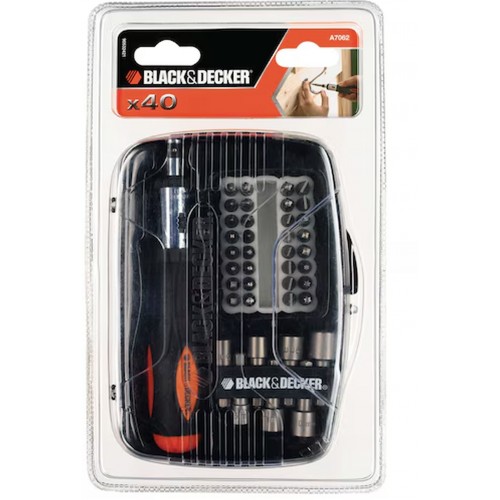 Black & Decker A7062-XJ: Zestaw 40 końcówek i nasadek z grzechotkowym wkrętakiem