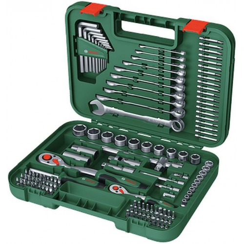 Dzięki uniwersalnemu 132-elementowemu zestawowi narzędzi ręcznych Bosch Advanced bez wysiłku wykonasz naprawy w domu, konserwację samochodu i wiele różnych prac majsterkowych. Ten zestaw dokręcający zawiera kilka typów grzechotek, klucze płasko-oczkowe, klucze imbusowe, śrubokręt do bitów, bity, nasadki i adaptery, które są przejrzyście i wygodnie ułożone w solidnej walizce. Te wysokiej jakości narzędzia zostały zaprojektowane tak, aby były trwałe, a ich ergonomiczne i dodatkowe rozwiązania konstrukcyjne zapewniają optymalny komfort i kontrolę.