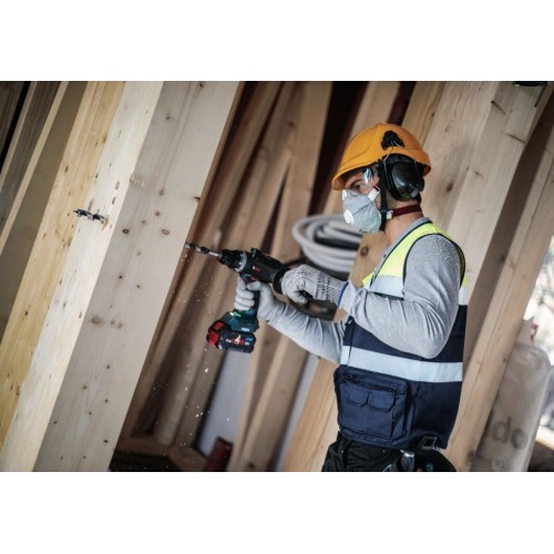 • Śrubowa końcówka samoczynnie wchodząca w materiał wciąga wiertło w drewno