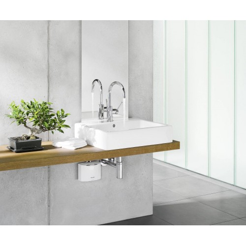 Woda podgrzewana jest bezpośrednio podczas przepływu – bez zbiornika i bez strat postojowych. Elektroniczne sterowanie mocy automatycznie dostosowuje moc grzewczą do aktualnego przepływu i temperatury wody, zapewniając stabilną temperaturę wyjściową do granicy wydajności urządzenia. Instalacja pod umywalką ogranicza straty ciepła w instalacji i zmniejsza zużycie energii.
