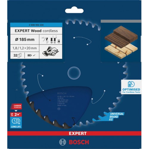 Tarcza pilarska EXPERT Wood cordless ma precyzyjnie naostrzone drobne zęby z węglika spiekanego w technologii Bosch Carbide Technology — co zapewnia długotrwałą ostrość i wydajne cięcie aluminium. Wykonuje dzięki temu czyste, precyzyjne cięcia i wytrzymuje dłużej niż jakakolwiek inna tarcza pilarska z naszej oferty. Pokryliśmy ją dodatkową powłoką, która zapobiega jej nagrzewaniu się i chroni ją przed korozją. Wyjątkowo cienki rzaz zmniejsza tarcie i sprawia, że pilarka tarczowa zużywa mniej mocy, co pozwala na dłuższą pracę bez konieczności ładowania baterii.