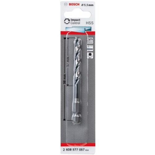 BOSCH Wiertło spiralne HSS 5,5 mm, z chwytem sześciokątnym 2608577057
