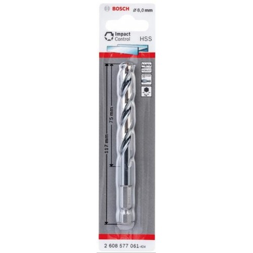 BOSCH Wiertło spiralne HSS 8,0 mm, z chwytem sześciokątnym 2608577061
