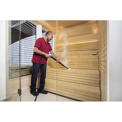 Kärcher SG 4/4 to kompaktowa i wydajna parownica profesjonalna, która dzięki ciśnieniu pary do 4 bar zapewnia doskonałe rezultaty czyszczenia oraz certyfikowaną dezynfekcję. Bezstopniowa regulacja ilości pary oraz funkcja VapoHydro umożliwiają precyzyjne dopasowanie parametrów pracy do konkretnego zadania – od delikatnego czyszczenia po usuwanie uporczywych zabrudzeń.