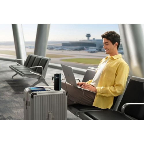 Może ładować jednocześnie trzy urządzenia z łączną mocą do 170 W. Powerbank posiada 2× USB-C, które samodzielnie mogą zasilać urządzenia mocą do 140 W. Do dyspozycji jest także port USB-A, oferujący samodzielnie do 33 W. Unikalną cechą jest szybkość ładowania powerbanku RAPID 25 000 mAh – od 0% do 80% można go naładować w zaledwie 37 minut.