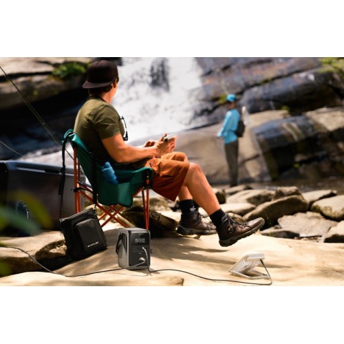 EcoFlow TRAIL 300 to wyjątkowo kompaktowa i lekka stacja zasilania o pojemności 288 Wh i łącznej mocy 300 W. Jest idealnym źródłem energii podczas biwakowania, podróży, wędkowania czy organizowania wydarzeń plenerowych. Może zasilać oświetlenie, kamery, tablety, głośniki i inne urządzenia. Jednocześnie jest łatwa w przenoszeniu, posiada wytrzymałą konstrukcję i dzięki bardzo kompaktowemu designowi z łatwością mieści się w plecaku. Dzięki kilku portom wyjściowym oraz gniazdu 12 V może jednocześnie zasilać wiele urządzeń. Można ją ładować z sieci, za pomocą paneli słonecznych lub z gniazda samochodowego.