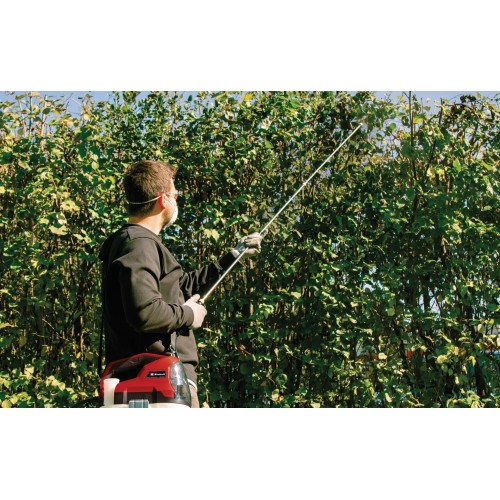 Oryginalny zestaw akcesoriów Einhell to zestaw dwuczęściowy, który można stosować z akumulatorowymi opryskiwaczami ciśnieniowymi Einhell GE-WS 18/35 Li, GE-WS 18/75 Li i GE-WS 18/150 Li. Solidna teleskopowa lanca ze stali nierdzewnej ma regulowaną długość od min. 1 metra do max. 2 metrów. Dzięki przezroczystemu dzwonowi opryskiwacza można precyzyjnie aplikować środek na określone powierzchnie, mając zawsze optymalny przegląd obszaru pracy. Wymiary wewnętrzne dzwonu opryskiwacza: 210 x 75 x 95 mm.