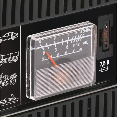 Ładowarka Einhell jest uniwersalnym prostownikiem do ładowania akumulatorów samochodowych i motocyklowych. Dzięki amperomierzowi można łatwo odczytać aktualny prąd ładowania.
