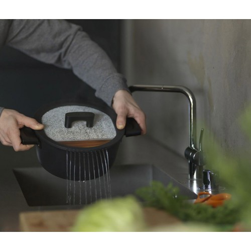 Garnek posiada wyjątkowo trwałą powłokę Hardtec Superior, która zapobiega przywieraniu potraw. Jednocześnie doskonale sprawdza się do przygotowania potraw na bazie mleka. Wykończona silikonem pokrywa idealnie przylega do rantu naczynia.