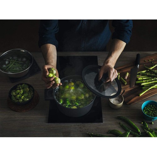 Garnek posiada wyjątkowo trwałą powłokę Hardtec Superior, która zapobiega przywieraniu potraw. Jednocześnie doskonale sprawdza się do przygotowania potraw na bazie mleka. Wykończona silikonem pokrywa idealnie przylega do rantu naczynia.