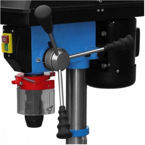Urządzenie wyposażone jest w łożyska kulkowe wrzeciona, które zapewniają płynną pracę i długą żywotność. W zestawie znajduje się również szybkomocujący uchwyt wiertarski 1–16 mm oraz mocowanie wrzeciona MK2 z stożkiem B16 dla uniwersalnego zastosowania.