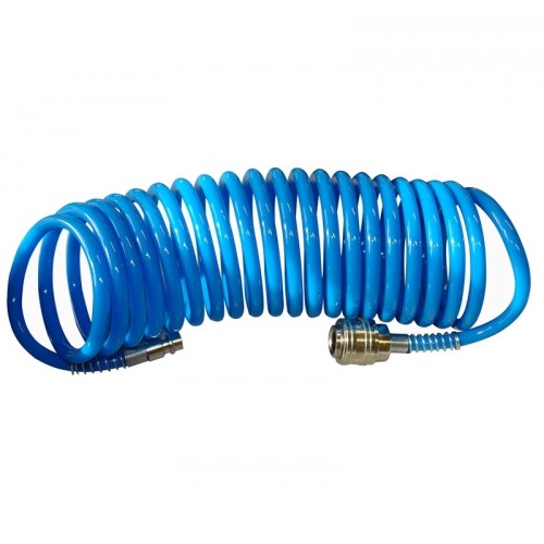Lehká a pevná polyuretanová spirálová hadice s ochranou proti zlomení nesmí chybět v žádné dílně, kde je kompresor. Hadice je včetně vsuvky a rychlospojky.