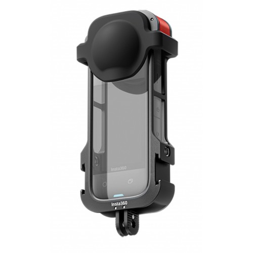 Ramka do mocowania akcesoriów do kamery Insta360 X4. Ramka chroni korpus i obiektywy kamery. Po obu stronach znajduje się prowadnica dla mocowania typu „Cold shoe”, a na spodzie wielofunkcyjny adapter – gwint 1/4 cala lub widełki. W zestawie ramka dla X4, osłona obiektywu.