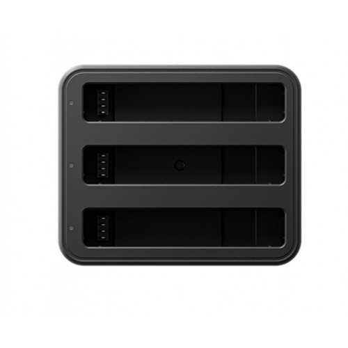 Hub ładujący dla trzech akumulatorów do kamery Insta360 X4. Hub naładuje akumulator 2290 mAh w 43 minuty (do 80% w 26 minut). Waga: 109 g Wymiary: 75 x 62 x 34 mm