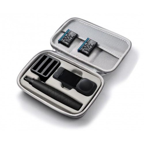 Wzmocniona walizka przeznaczona dla kamery X4. Do walizki zmieści się kamera X4 (ze standardową lub premium osłoną obiektywu, z dekielkiem obiektywu i termogripem), 2 akumulatory, hub do ładowania oraz selfie stick o długości 85 cm.