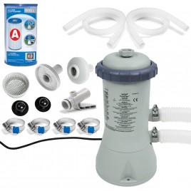 • Pompa - zapewni krystaliczną czystość wody w Twoim basenie. Pompa posiada specjalne miejsce wyznaczone do zamontowania filtra. Dzięki niemu pompa nie tylko dostarczy odpowiednią ilość wody do Twojego basenu, ale także zapewni odpowiednią czystość. Filtry są wymienne i wymagają stałej kontroli stanu dla zapewnienia maksymalnej wydajności.