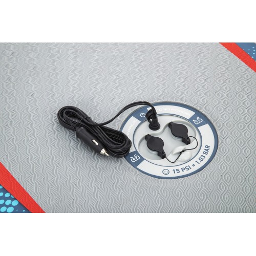 Wykonana z materiału FortiFiber™ w technologii drop stitch, deska składa się z tysięcy wewnętrznych włókien łączących górną i dolną warstwę, co gwarantuje wyjątkową sztywność i wytrzymałość – porównywalną z twardą deską – przy zachowaniu lekkości i łatwości transportu. Dzięki systemowi samopompującemu CompactAir™ z wbudowaną pompką wystarczy podłączyć kabel zasilający i w kilka chwil przygotować deskę do użycia.