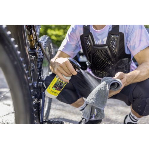 Praktyczny środek w butelce z ergonomicznym spryskiwaczem ułatwia codzienną pielęgnację wszystkich typów rowerów, w tym rowerów elektrycznych, górskich i szosowych. Nadaje się do materiałów takich jak karbon, aluminium i guma, pozostawiając powierzchnie czyste i błyszczące. Preparat łatwo się spłukuje, co pozwala oszczędzać wodę i upraszcza użytkowanie.