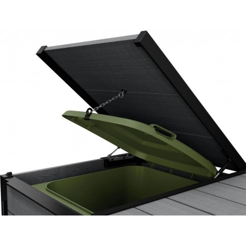 Szukasz praktycznego i stylowego rozwiązania do segregacji odpadów? Obudowa na kosze HIDE AWAY 2×240L to doskonały wybór na zewnątrz – mieści dwa kosze o pojemności 240 litrów każdy. Dzięki osobnym pokrywom z siłownikami hydraulicznymi masz łatwy dostęp do każdego kosza, jednocześnie zapobiegając rozprzestrzenianiu się nieprzyjemnych zapachów.