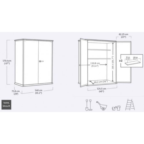 Szafa ogrodowa Keter Signature powiększy przestrzeń do przechowywania w Twoim ogrodzie, podwórku, tarasie czy pergoli. Można w nim przechowywać sprzęt sportowy, narzędzia ogrodowe, narzędzia warsztatowe i inne potrzebne rzeczy. Ochronisz swoje rzeczy przed warunkami atmosferycznymi, takimi jak deszcz. Dodatkowo przechowywane przedmioty są również zabezpieczone przed zabrudzeniem.