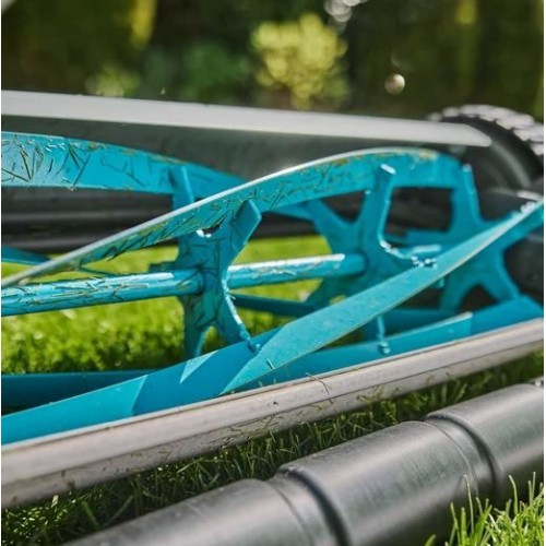 Dzięki bezkontaktowej technice cięcia noże ustawione są w odległości zaledwie 40 mikrometrów – cieńszej niż źdźbło trawy – i nie stykają się ze sobą, co pozwala zachować ich trwałą ostrość. Duże koła z wyraźnym bieżnikiem oraz lekka konstrukcja zapewniają łatwe prowadzenie i doskonałą manewrowość, nawet w wilgotnych warunkach i w trudno dostępnych miejscach ogrodu.