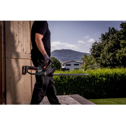 Ekstremalnie lekkie i ciche akumulatorowe nożyce Metabo HS 18 LTX 45 przeznaczone są do łatwego przycinania żywopłotów i krzewów. Noże cięte laserowo i szlifowane diamentem zapewniają czyste cięcia, a specjalne zęby w kształcie łzy zapobiegają wypadaniu gałęzi podczas cięcia.