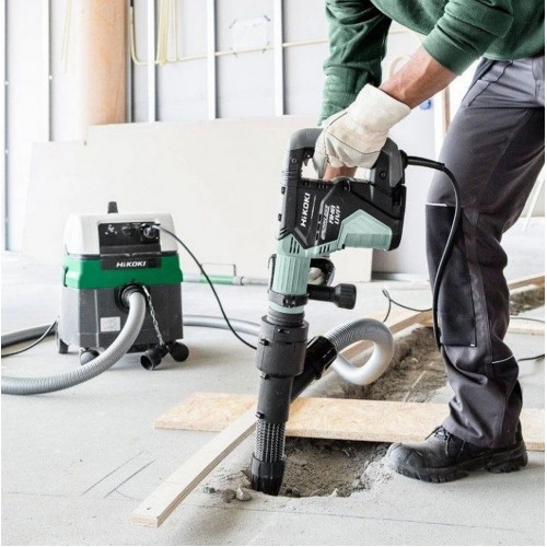 Adapter HiKOKI do odsysania pyłu do młotów wyburzeniowych zapewnia skuteczne i czyste środowisko pracy podczas kucia i rozbiórki. Kompatybilny z wybranymi modelami młotów HiKOKI, łatwy montaż na narzędziu.