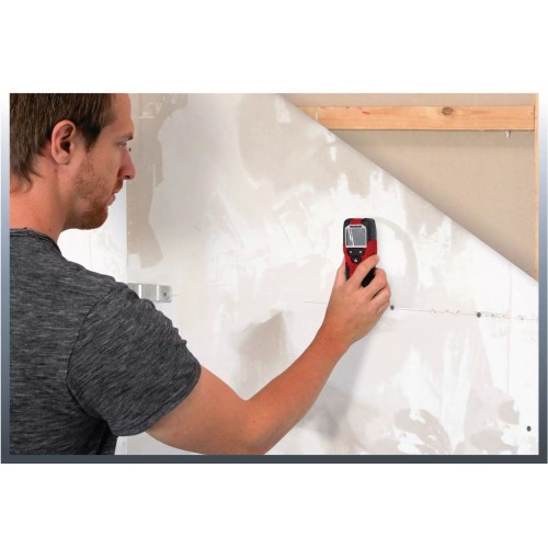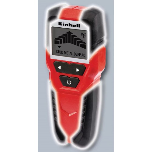 Cyfrowy detektor Einhell TC-MD 50 jest niezbędnym narzędziem dla majsterkowiczów i rzemieślników: w domu, na placu budowy czy przy remontach – detektor cyfrowy doskonale sprawdza się w bezpiecznym wykrywaniu elementów w ścianach. Urządzenie niezawodnie wykrywa metale, drewno oraz przewody elektryczne w płycie gipsowo-kartonowej: metale żelazne, takie jak stal i przewody pod napięciem, wykrywane są do głębokości 50 mm, metale nieżelazne, jak miedź, do 38 mm. Drewno wykrywane jest do głębokości 19 mm. Dzięki sygnałowi akustycznemu obsługa jest prosta i intuicyjna. Osłony ślizgowe umieszczone z tyłu zapewniają ochronę ściany, a miękki uchwyt wygodną obsługę jedną ręką. Gdy detektor Einhell TC-MD 50 zostanie odłożony, automatycznie wyłącza się po 1 minucie nieużywania.