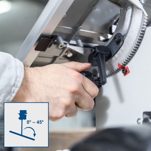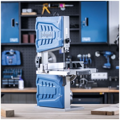 Dzięki dwóm prędkościom cięcia piła taśmowa umożliwia wykonywanie czystych i precyzyjnych cięć w różnych materiałach oraz w drewnie o różnej twardości. Podstawą urządzenia jest mocny i cichy silnik indukcyjny z bezszczotkową technologią, który zapewnia niezawodną pracę i długą żywotność. Stół roboczy jest uchylny w zakresie od 0° do 45°, posiada możliwość przedłużenia i wykonany jest z wytrzymałego stopu aluminium. Wyposażenie obejmuje solidną prowadnicę równoległą z szybkim mocowaniem oraz precyzyjną prowadnicę kątową. Pozostała część konstrukcji piły taśmowej jest w całości metalowa.