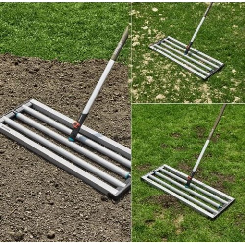 GARDENA combisystem niwelator terenu to praktyczne narzędzie do wyrównywania, piaskowania i przygotowania podłoża pod trawnik. Dzięki szerokości roboczej 76 cm umożliwia szybkie i efektywne rozprowadzanie ziemi lub piasku – zarówno przy zakładaniu nowego trawnika, jak i podczas pielęgnacji istniejącej murawy po wertykulacji czy dosiewie.