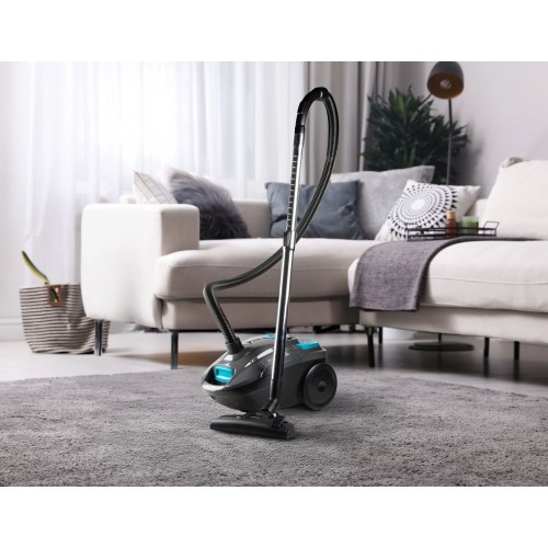 Ten odkurzacz workowy do domów ze zwierzętami został zaprojektowany z myślą o wygodnym sprzątaniu całego mieszkania. Długi kabel zasilający 7 m, zasięg pracy 10 m, teleskopowa metalowa rura oraz elastyczny wąż umożliwiają odkurzanie bez częstego przepinania między gniazdkami. Bogaty zestaw akcesoriów ułatwia sprzątanie podłóg, parkietów, mebli, wnętrza samochodu oraz trudno dostępnych miejsc.