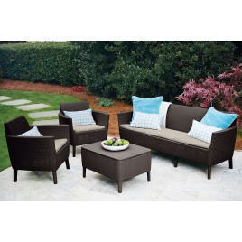 Nowoczesne wzornictwo, elegancja i bardzo wysoki komfort użytkowania to główne cechy charakteryzujące zestaw meblowy Salemo. Komplet składa się z szerokiej, wygodnej 3 osobowej sofy, 2 foteli oraz stolika z funkcją schowka. Meble cechują się oryginalną strukturą powierzchni imitującą naturalny splot rattanowy. Zestaw idealnie sprawdzi się przy aranżacji ogrodów, tarasów oraz przy wyposażeniu wnętrz. Meble w aktualnie modnej stylistyce są bardzo proste w montażu oraz łatwe w utrzymaniu w czystości. Odporne na działanie niekorzystnych warunków pogodowych i promieni UV.