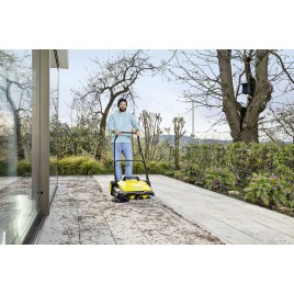 Nieważne czy chodzi o zamiatanie płatków kwiatów na wiosnę, piasku w lecie, liści jesienią czy żwiru zimią - nowa zamiatarka Kärcher S 6 jest odpowiednia do czyszczenia wokół domu i ogrodu przez cały rok. Jest bardzo skutecznym urządzeniem: dzięki szczotce walcowej, szczotce bocznej i szerokości zamiatania 670 mm ze szczotką boczną, bez trudu zamiecie do 2500 m2 na godzinę. Jest ergonomiczna: uchwyt prowadzący można ustawić w 2 pozycjach i dostosować do wzrostu danego użytkownika. Zapewnia czystość: zanieczyszczenia trafiają bezpośrednio do 38 litrowego zbiornika. Przy jego opróżnianiu nie ubrudzisz rąk. Kolejną zaletą jest dodatkowa regulacja wysokości szczotki bocznej, co umożliwia dopasowanie nacisku szczotki do rodzaju zabrudzeń. Dzięki temu zawsze osiągniesz optymalne rezultaty zamiatania. S 6 można również łatwo złożyć dzięki uchwytowi nożnemu na obudowie. Złożona – podczas przechowywania zajmuje niewiele miejsca. Zamiatarkę szybko przygotujesz do pracy dzięki mocowaniu szczotki bocznej bez użycia narzędzi.