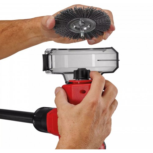 Dwie dołączone szczotki O 110 mm można łatwo zamontować na skrobaku fugowym bez użycia narzędzi.