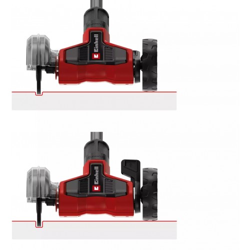 Kółko prowadzące akumulatorowej szczotki fugowej można ustawić na dowolną głębokość fugi bez użycia narzędzi. Dzięki temu urządzenie pozostaje równoległe do szczotki fugowej, co pozwala na precyzyjną pracę na tej samej wysokości co kółko, dla optymalnych efektów czyszczenia.