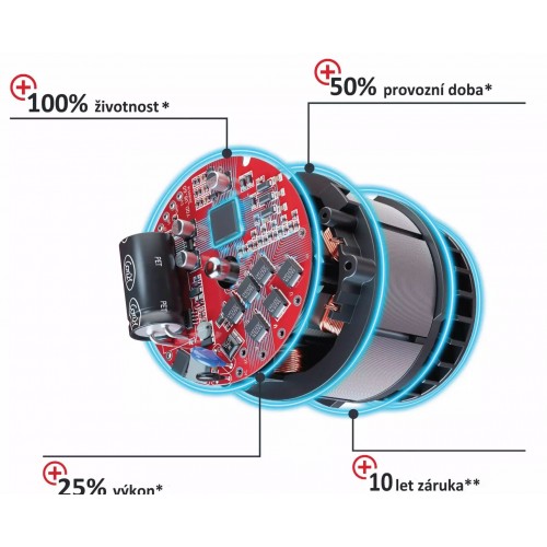 • Silnik bezszczotkowy – wyższa wydajność i dłuższy czas pracy