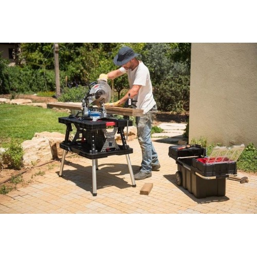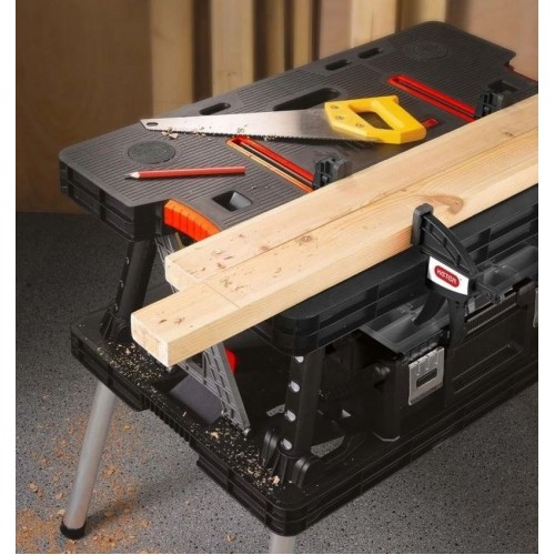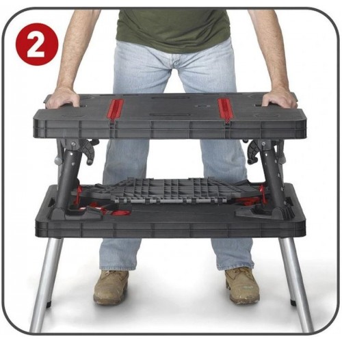 Przenośny stół warsztatowy Folding Work Table marki Keter to idealne rozwiązanie dla majsterkowiczów i profesjonalistów, którzy potrzebują solidnego, mobilnego i łatwego w obsłudze stołu roboczego. Dzięki szybkiemu systemowi rozkładania i dużej nośności, zapewnia wygodę i stabilność w każdym miejscu – w warsztacie, garażu lub ogrodzie.
