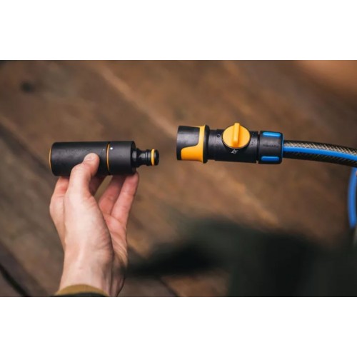 Fiskars Comfort końcówka nawadniająca wyróżnia się ergonomicznym designem z powierzchnią SoftGrip™, zapewniając wygodny i pewny chwyt podczas podlewania. Dzięki praktycznej konstrukcji można łatwo kontrolować strumień wody i szybko dopasować rodzaj rozprysku w zależności od potrzeb – do podlewania ogrodu, rabat kwiatowych, warzywników lub czyszczenia powierzchni.