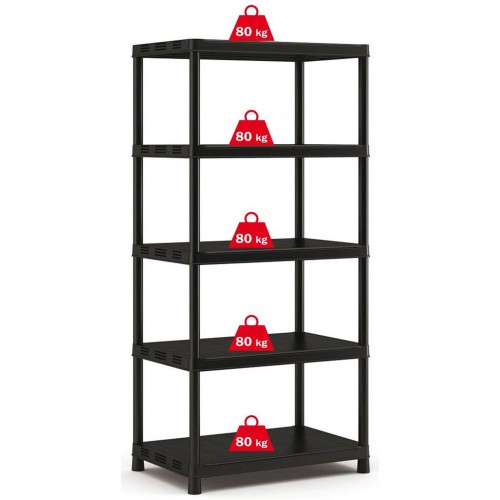 Plastikowy regał PLUS XL/5 – 5 półek, 90 × 60 × 187 cm, nośność 400 kg