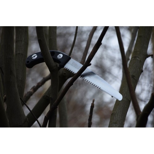 Odlewana guma rączka wygodnie leży w dłoni i pochłania wszelkie wibracje. Zdasz sobie sprawę, że twoje przedramię i piła są idealnie wyważone. Jeśli używasz tej piły obok Gomtaro z dużymi zębami, to piła ta jest łatwo rozpoznawalna na srebrnych śrubach.