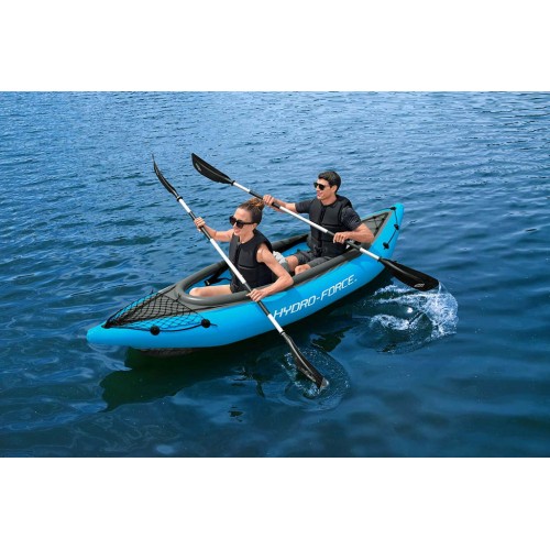 Wybierz aktywny wypoczynek i korzystaj z letnich dni z kajakiem Hydro-Force Cove Champion X2. Wykonany jest z mocnego i wytrzymałego materiału winylowego PVC, powleczonego siatką nylonową. Dzięki zastosowanym materiałom, kajak jest olejoodporny, wodoodporny i wytrzymały na promienie UV. Powłoka nylonowa jest także odporna na przedziurawienie oraz wytrzymała na rwące nurty i kamieniste rzeki. Dmuchana podłoga i siedziska z oparciem, zapewniają komfort użytkowania i wygodę nawet podczas długich spływów.