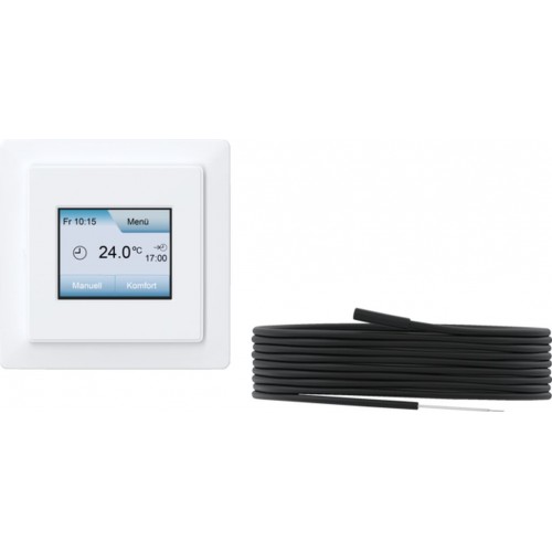 Ten elektroniczny regulator wyposażony jest w dwa czujniki – czujnik podłogowy oraz zintegrowany czujnik temperatury pomieszczenia, co umożliwia precyzyjne sterowanie temperaturą oraz ochronę podłogi przed przegrzaniem. Samoucząca się regulacja automatycznie optymalizuje czasy ogrzewania zgodnie z Twoim trybem życia, zwiększając komfort i jednocześnie zmniejszając zużycie energii.