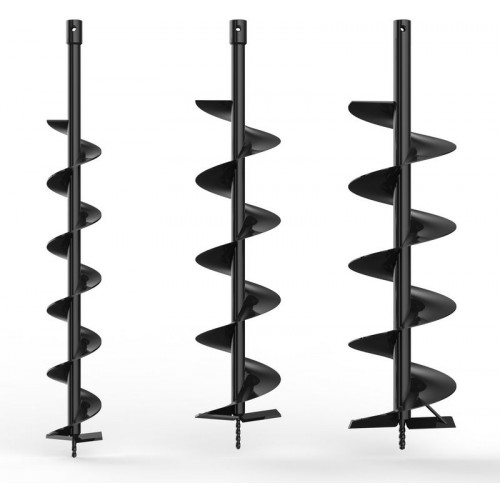 W zestawie znajdują się wiertła o średnicy 100, 150 i 200 mm o długości 800 mm, dzięki czemu można dobrać odpowiedni rozmiar do konkretnego zastosowania. Solidna konstrukcja umożliwia pracę nawet w trudniejszych warunkach.