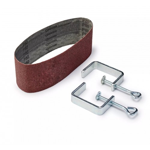 | Osprzęt/akcesoria | pojemnik na pył z filtrem, pas ścierny 3×P80, uchwyty do mocowania stacjonarnego |