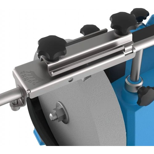 Dzięki funkcji VARIO SPEED można ustawić prędkość obrotową kamieni w zakresie 32–150 obr./min, w tym możliwość zmiany kierunku obrotów. Szlifierka wyposażona jest w ramię podporowe z przesuwanym uchwytem zapewniające bezpieczną i precyzyjną obsługę.